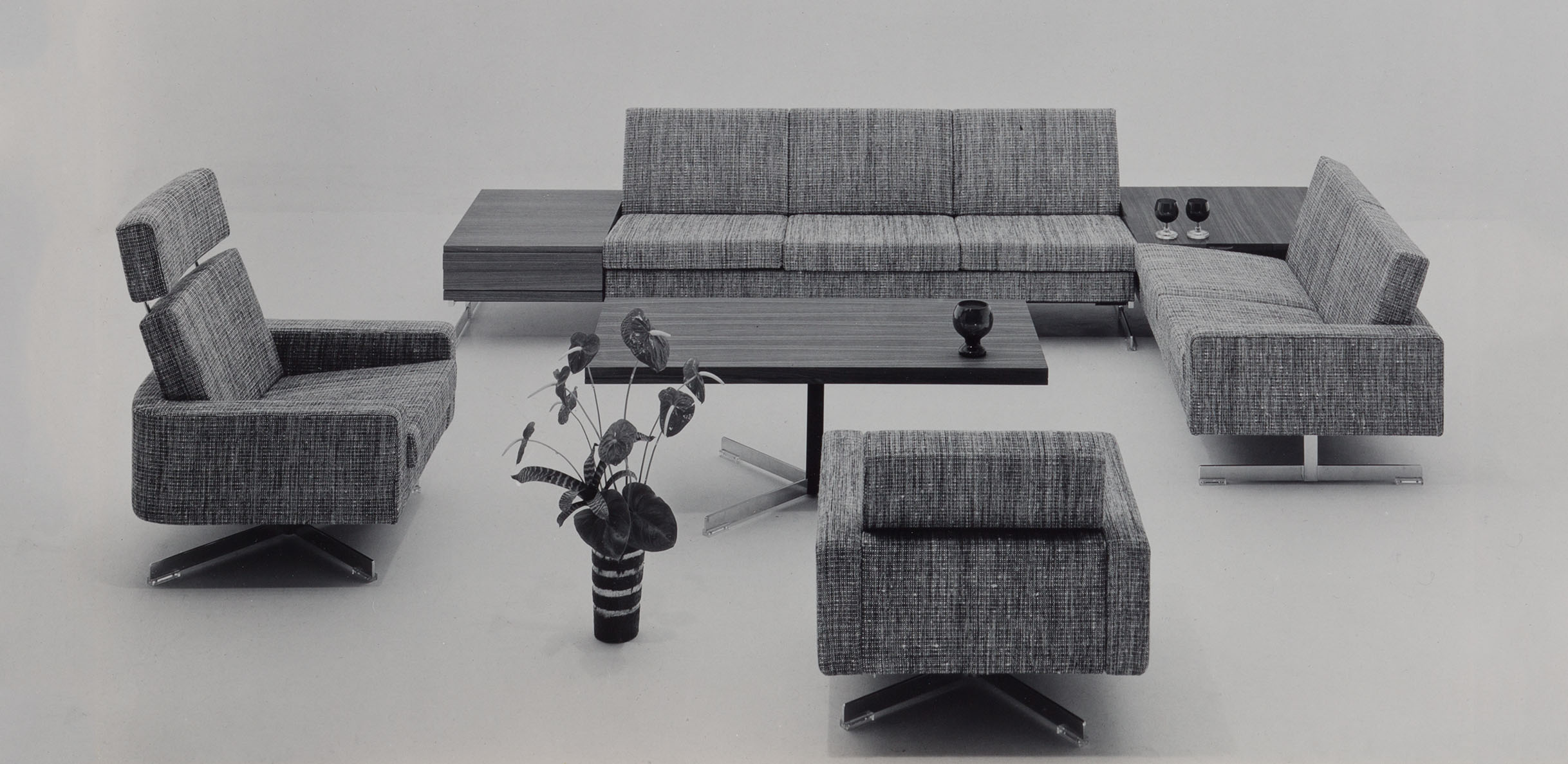 Geïnspireerd door het alom heersende positieve gevoel van de jaren 60 richtte de jonge stoffeerder Rolf Benz in 1964 in Nagold zijn eigen onderneming op. Missie: zitmeubilair opnieuw bedenken. Meteen met het eerste bank- en fauteuilprogramma slaagt hij erin een grote slag te slaan. Met “Addiform” verleent Rolf Benz de moderne tijdgeest expressie en vorm, verandert de kijk- en zitgewoontes volledig en breekt met traditionele meubelopstellingen. De Addiform-elementen zijn flexibel en kunnen tot een individueel woonlandschap worden gecombineerd. Fauteuils kunnen worden toegevoegd, in een hoek worden geplaatst, als zelfstandige fauteuil worden gepositioneerd of met een salontafel als tussenelement worden gekoppeld. Men kan fauteuils met een bank verbinden en met een hoeksalontafel aan de zijkant afsluiten. De bank zelf is uitklapbaar en kan tot een comfortabele slaapplek worden omgebouwd. Kortom: Addiform overtuigt over de gehele linie – door flexibiliteit, functionaliteit en een moderne helderheid, die zelfs nu nog fascineert.